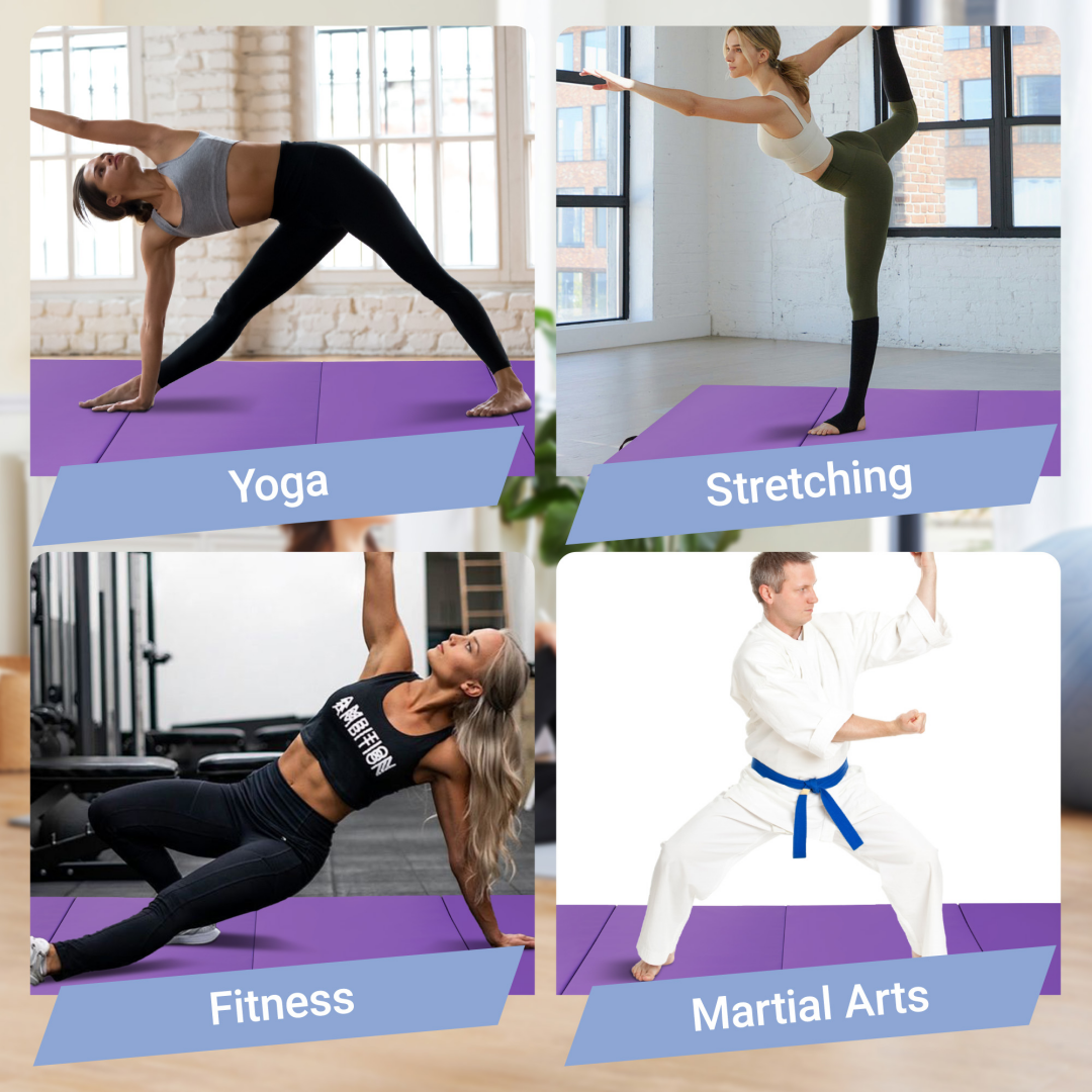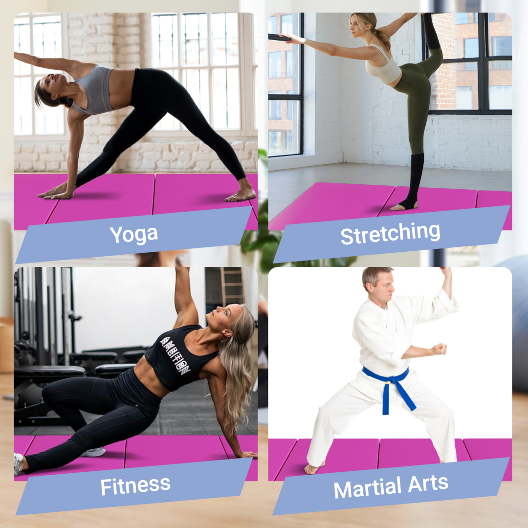10 feet long 4 feet wide at 2-inch thick firm high Density EPE foam is ideal for activities and exercises such as yoga, aerobics, Pilates, and martial artsDimensions Package Dimensions Product Weight Package Weight Product Code Style 120.00 x 48.00 x 24.00 inch 30.31 x 8.66 x 2.76 inch 15.00 lb 15.43 lb ZHUMI-HJ-SFGR-4PK Purple 120.00 x 48.00 x 24.00 inch 30.31 x 8.66 x 2.76 inch 15.00 lb 15.43 lb ZHUMI-HJ-SFGR-4PP Pink -