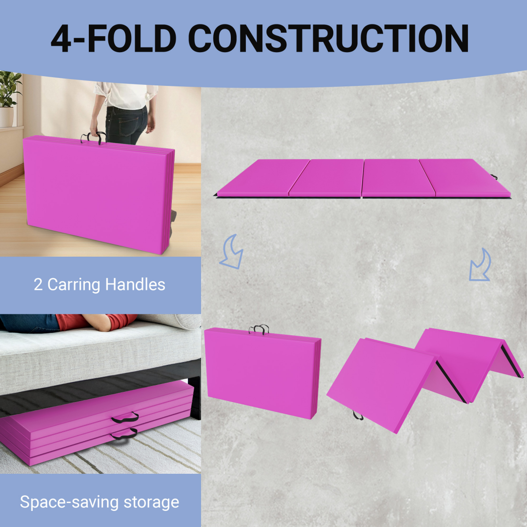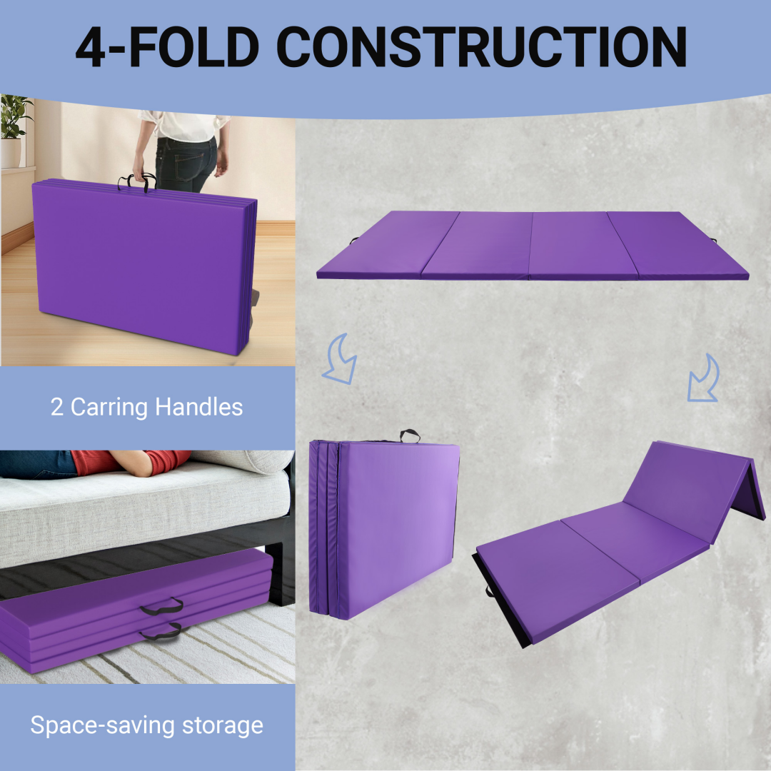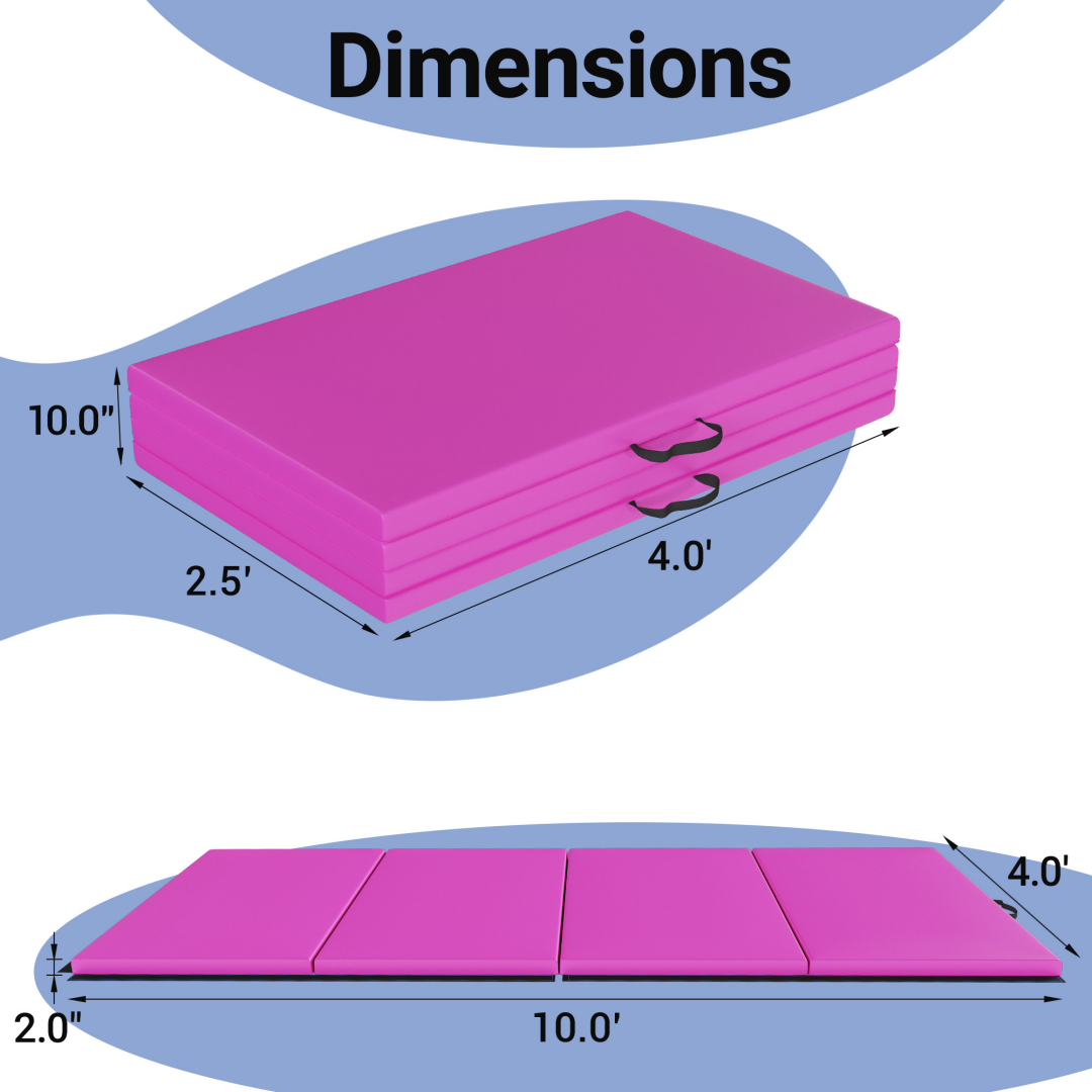- A foldable, 4 panel design and handles on each mat make it easy to store and Transport your mat. Expanded dimension: 10' x 4' x 2"; folded dimensions: 48" x 30" x 8"